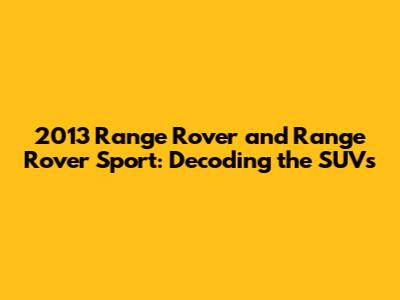 The 2013 Range Rover and Range Rover Sport are outstanding SUVs that offer a luxurious and capable driving experience. Both models have their strengths and weaknesses, and the best choice for you will depend on your individual needs and preferences. By understanding their features, common problems, and maintenance requirements, you can make an informed decision and enjoy years of driving pleasure. Whether you choose the flagship Range Rover or the sportier Range Rover Sport, you're investing in a vehicle that combines luxury, performance, and iconic design. Happy motoring!