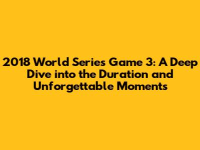 Hey baseball fanatics! Ever wondered about the exact duration of the 2018 World Series Game 3? You're in luck, because we're about to dive deep into the details of that unforgettable matchup. We'll be looking at the game's length, the key moments that kept us on the edge of our seats, and a little bit of the broader context of the series itself. So, grab your peanuts and cracker jacks, because we're about to take a trip down memory lane, reliving the excitement and drama of World Series Game 3!
