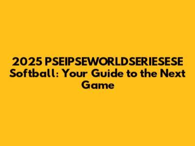 Hey sports fanatics! Are you all geared up for the 2025 PSEIPSEWORLDSERIESESE Softball? This is going to be epic! I'm here to give you the lowdown on the next big game, breaking down everything you need to know. We're talking dates, times, teams, and maybe even a few insider tips to keep you in the know. So, grab your snacks, get comfy, and let's dive into the exciting world of PSEIPSEWORLDSERIESESE softball.