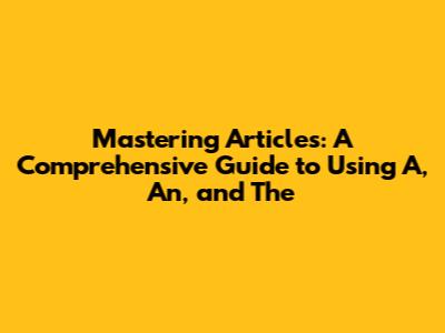 Articles are types of adjectives used to define whether a noun is specific or unspecific. English has two types of articles: definite (the) and indefinite (a, an). The definite article (the) is used before a noun to indicate that the identity of the noun is known to the reader. The indefinite article (a, an) is used before a noun that is general or when its identity is not known. Choosing the correct article depends on the context and the noun it modifies. The article is always placed before the noun or before the adjective that modifies the noun. Mastering the use of articles enhances clarity and precision in writing and speaking, making communication more effective. In this comprehensive guide, we will explore the rules and nuances of using 'a,' 'an,' and 'the,' providing clear examples and practical tips to help you master these essential components of English grammar. By understanding when and how to use each article, you can significantly improve your English proficiency and communicate with greater confidence.