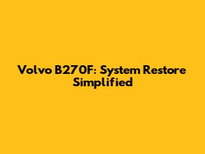 Volvo B270F: System Restore Simplified