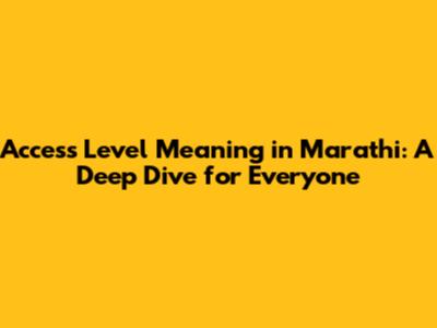 Access Level Meaning in Marathi: A Deep Dive for Everyone