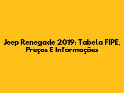 Jeep Renegade 2019: Tabela FIPE, Preços E Informações