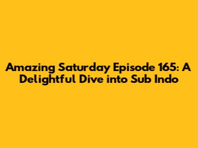 Hey guys! Are you ready for a fun-filled adventure? Today, we're diving deep into the amazing world of Amazing Saturday Episode 165, specifically the Sub Indo version. This variety show is a total blast, and if you're anything like me, you're always on the lookout for fresh, engaging content. So, buckle up! We're about to explore what makes this episode so special, why the Sub Indo format is so popular, and what you can expect from this exciting installment. Let's get this show on the road!