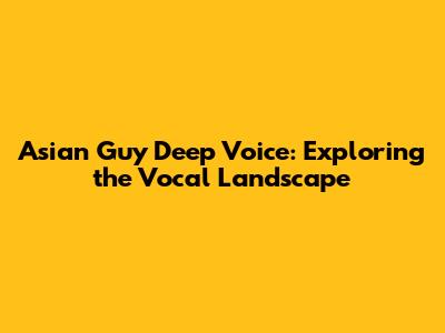 Hey guys! Ever been captivated by a deep, resonant voice, especially one coming from an Asian guy? There's something undeniably alluring about it, right? It's like a finely tuned instrument, capable of conveying a wide range of emotions and leaving a lasting impression. This article dives deep into the world of Asian guys with deep voices, exploring what makes them so captivating, the cultural nuances at play, and how these voices are shaping various aspects of our world, from entertainment to everyday interactions. Let's get started, shall we?