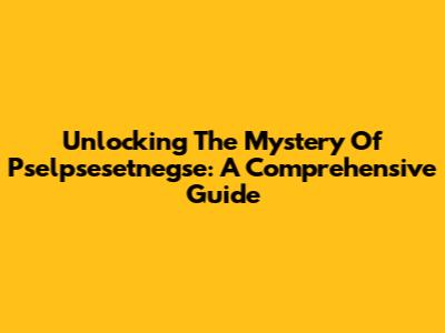 Unlocking The Mystery Of Pselpsesetnegse: A Comprehensive Guide
