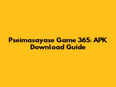 Pseimasayase Game 365: APK Download Guide