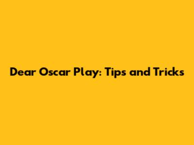 Dear Oscar Play: Tips And Tricks