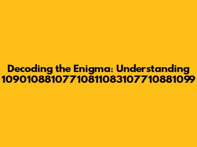 Have you ever stumbled upon a mysterious sequence of numbers and wondered what secrets it holds? Today, we're diving deep into the world of number sequences, specifically focusing on the intriguing string: 10901088107710811083107710881099. This isn't just a random jumble of digits; it's a code waiting to be cracked, a puzzle begging to be solved. In this comprehensive guide, we'll explore potential methods to decipher this numerical mystery, offering insights and strategies that can be applied to similar alphanumeric challenges you might encounter. Whether you're a seasoned codebreaker, a curious student, or simply someone who enjoys a good mental workout, you're in the right place. Let's embark on this exciting journey of decoding together!