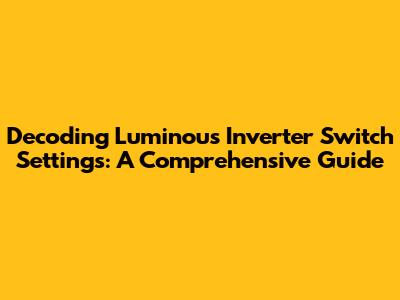 Decoding Luminous Inverter Switch Settings: A Comprehensive Guide