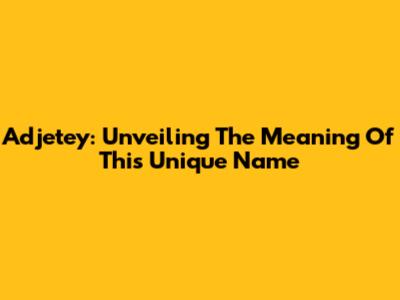 Adjetey: Unveiling The Meaning Of This Unique Name