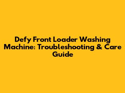 Defy Front Loader Washing Machine: Troubleshooting & Care