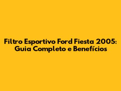 Filtro Esportivo Ford Fiesta 2005: Guia Completo E Benefícios