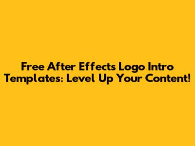 Hey guys! Ever scrolled through YouTube or Instagram and seen those super slick, professional-looking intros for videos? You know, the ones where a logo just appears with awesome animations and effects? Well, guess what? You don't need to be a Hollywood VFX wizard or spend a ton of cash to get that vibe. Today, we're diving deep into the awesome world of free After Effects logo intro templates! That's right, you can totally snag high-quality intro animations for your logos without breaking the bank. Whether you're a seasoned video editor or just starting out, these templates are a game-changer. They save you heaps of time, boost your brand's credibility, and make your content stand out from the crowd. So, buckle up, because we're about to explore how you can find, use, and customize these fantastic resources to make your videos pop!