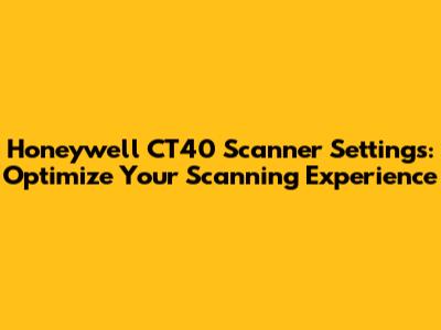 Honeywell CT40 Scanner: Optimize Your Settings