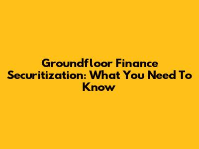 Groundfloor Finance Securitization: What You Need To Know