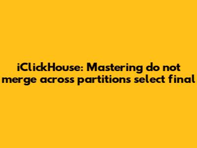 Alright, let's get straight to the point: iClickHouse donotmergeacrosspartitionsselectfinal is a setting in ClickHouse that controls how the data is handled when you're querying across different partitions. Before we go any further, just a quick reminder: ClickHouse, as you may already know, stores data in partitions. Think of these partitions as neatly organized storage units within your table. Each partition holds a chunk of your data, typically divided based on a specific criteria like date or some other relevant factor. Now, the main job of do_not_merge_across_partitions_select_final is to tell ClickHouse whether or not it should try to merge data from these different partitions during the final stage of your query, especially when using SELECT FINAL. So, when you set this option to true, ClickHouse avoids merging data from different partitions, and it returns the data from each partition separately. On the other hand, setting it to false (which is the default behavior), ClickHouse will try to merge data across partitions.