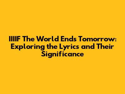 Hey music lovers! Ever stumbled upon a song that just hits you in the feels? Well, today, we're diving deep into "IIIIF The World Ends Tomorrow," a track that's been making waves and sparking conversations. We'll be breaking down the lyrics, exploring their hidden meanings, and figuring out why this song has resonated with so many of us. So, grab your headphones, get comfy, and let's get started!