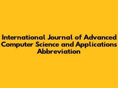 Alright, guys, let's dive into the world of academic journals, specifically the International Journal of Advanced Computer Science and Applications, or as it's more commonly known by its abbreviation, IJACSA. In the realm of computer science, where new research and innovations are constantly emerging, staying updated with the latest findings is crucial. This journal serves as a significant platform for researchers, academics, and industry professionals to share their insights and advancements. Understanding its abbreviation and the scope of its content can be super helpful, whether you're writing a research paper, looking for reliable sources, or just trying to keep up with the trends.