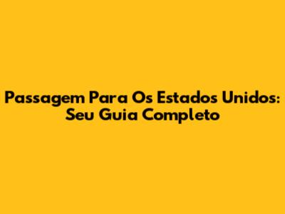 Passagem Para Os Estados Unidos: Seu Guia Completo