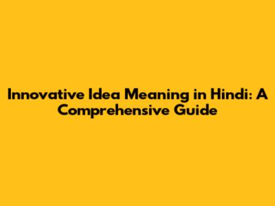 Innovative Idea Meaning In Hindi: A Comprehensive Guide