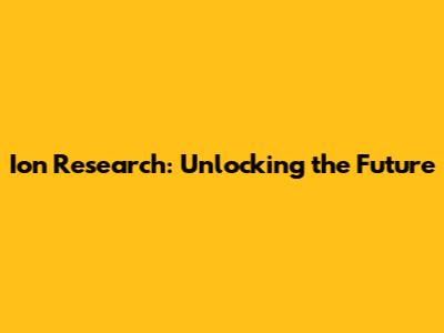 Innovations and Future Directions in Ion Research