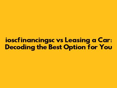 Hey everyone, let's dive into a topic that many of us grapple with at some point: ioscfinancingsc vs leasing a car. It's a big decision, right? Buying a car is a major purchase, and figuring out whether to buy it outright with a loan (ioscfinancingsc, for example) or go for a lease can feel like navigating a maze. Don't worry, we're going to break it all down in a way that's easy to understand. We'll look at the pros and cons of each, so you can confidently choose the option that fits your lifestyle and financial situation like a glove. This guide will help you to know which will be the best option for you, between ioscfinancingsc and leasing the car you have always dreamed of.