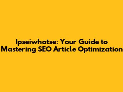 Hey guys! Ever wondered how to make your articles truly shine in the vast digital landscape? Let's dive deep into the world of SEO article optimization, specifically focusing on ipseiwhatse. It sounds a little cryptic, I know, but trust me, it's a key to unlocking the full potential of your online content. This article is your comprehensive guide to understanding what it takes to create articles that not only capture your audience's attention but also dominate search engine results. We're talking about strategies, tips, and tricks to ensure your content gets seen by the right people at the right time. So, buckle up, because we're about to embark on a journey that will transform how you approach article writing and SEO.