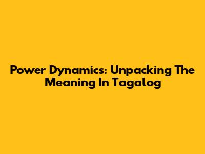 Power Dynamics: Unpacking The Meaning In Tagalog