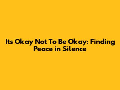 Hey everyone, let's talk about something super important: mental health. It's a journey, not a destination, and sometimes, that journey gets a little bumpy. The main thing is that it's okay not to be okay. We're all human, and that means experiencing a whole range of emotions, from pure joy to deep sadness, and everything in between. It is so easy to compare ourselves to others, but it's important to remember that everyone has their own battles and challenges they are facing. This article is all about understanding that it's absolutely alright not to have it all together all the time and discovering how to find peace and strength in those moments of silence. We'll explore why mental health matters, how to recognize when you're struggling, and, most importantly, what steps you can take to care for yourself and find your way back to a place of inner peace. Getting real is important, so let's start by acknowledging that life isn't always sunshine and rainbows; it's a mix of experiences, and it's okay to feel whatever you're feeling.