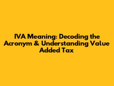 Ever wondered what IVA stands for? Well, wonder no more! IVA, in the world of finance and taxes, refers to Impuesto al Valor Agregado, which translates to Value Added Tax (VAT) in English. It's a consumption tax assessed on the value added to goods and services. Understanding IVA is crucial for businesses and consumers alike, as it impacts pricing, profitability, and overall economic activity. So, let’s break down what IVA really means and why it matters.
