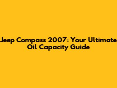 Knowing the correct oil capacity for your 2007 Jeep Compass, choosing the right type of oil, and performing regular maintenance are essential for ensuring your engine's longevity and performance. By following the guidelines outlined in this article, you can keep your Jeep running smoothly and avoid potential problems. Remember to always consult your owner's manual for specific recommendations and specifications. Happy Jeeping!