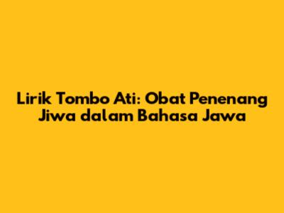 Lirik Tombo Ati: Obat Penenang Jiwa Dalam Bahasa Jawa
