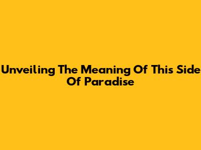 Unveiling The Meaning Of 'This Side Of Paradise'