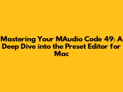 Hey everyone! If you've got your hands on the MAudio Code 49, you know it's a pretty sweet MIDI controller, right? But let's be real, sometimes getting it to play nice with your digital audio workstation (DAW) and tweaking those presets can feel like a bit of a puzzle. That's where the MAudio Code 49 preset editor for Mac comes into play. This nifty piece of software is your ticket to unlocking the full potential of your keyboard, letting you customize everything from how the knobs and faders respond to creating your own unique control mappings. In this guide, we're going to walk through everything you need to know to get the most out of this editor, making your production workflow smoother and your creative process way more intuitive. We'll cover installation, basic navigation, how to save and load presets, and some cool tips and tricks to really make the Code 49 your own. So grab your keyboard, fire up your Mac, and let's get started on making this controller sing!