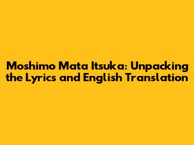 Hey guys! Ever stumbled upon a song that just hits you right in the feels, even if you don't fully understand the language? "Moshimo Mata Itsuka" is one of those tracks for many. It's a beautiful Japanese song, and today, we're diving deep into its lyrics and their English translation. So, buckle up, grab your headphones, and let's explore the meaning behind this amazing song!