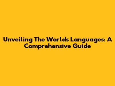 Unveiling The World's Languages: A Comprehensive Guide