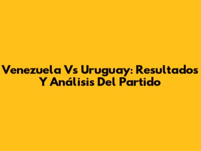 Venezuela Vs Uruguay: Resultados Y Análisis Del Partido
