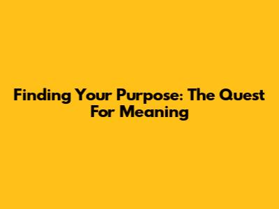 Finding Your Purpose: The Quest For Meaning