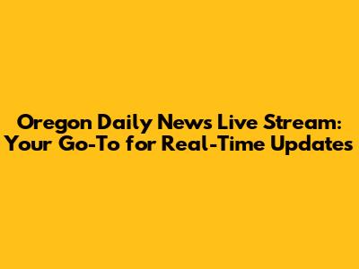 Oregon Daily News Live Stream: Stay Informed