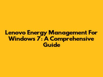 Lenovo Energy Management For Windows 7: A Comprehensive Guide