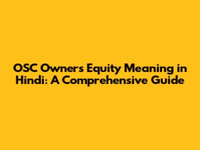 OSC Owners' Equity in Hindi: Meaning and Significance