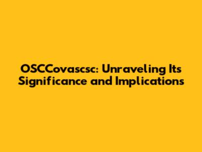 The Impact and Applications of OSCCovascsc Today