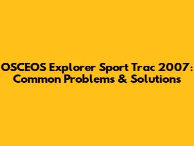 OSCEOS Explorer Sport Trac 2007: Common Problems & Solutions