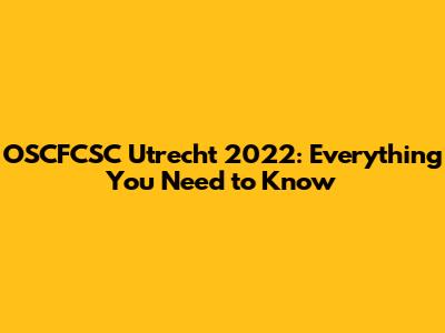 OSCFCSC Utrecht 2022: Everything You Need To Know