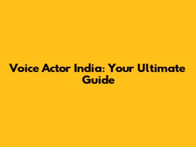 Voice Actor India: Your Ultimate Guide