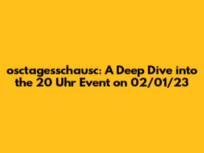 Let's dive into the osctagesschausc event that took place at 20 Uhr on 02/01/23. This article aims to dissect and understand the significance of this particular event, its context, and potential impact. Guys, whether you're familiar with osctagesschausc or just stumbled upon this, buckle up for a comprehensive exploration.