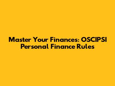 Master Your Finances: OSCIPSI Personal Finance Rules