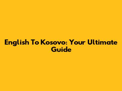 English To Kosovo: Your Ultimate Guide