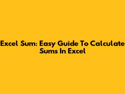 Excel Sum: Easy Guide To Calculate Sums In Excel